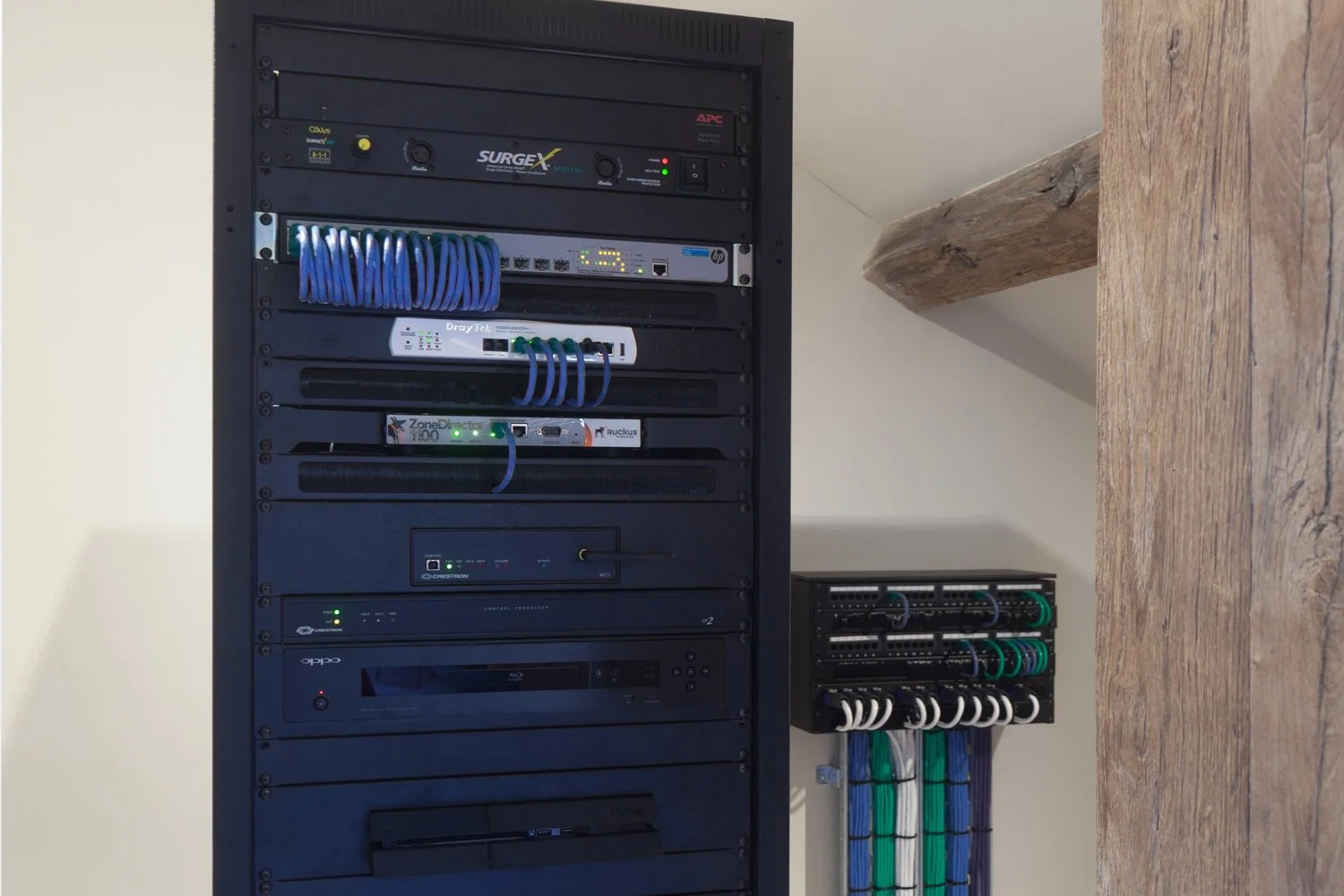 The final part of the puzzle is the main equipment rack, which would be built offsite and brought to the property at the last possible minute so that potentially expensive equipment is not exposed to the dust and environment of a building site. All the equipment is installed, wired and tested offsite and then simply brought to the property and plugged in to the cabling infrastructure before the final in situ testing can take place.